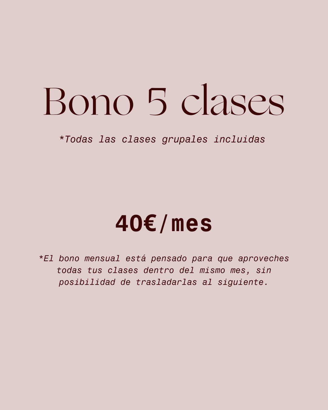 - Bono 5 clases → ideal si vienes 1 día por semana.