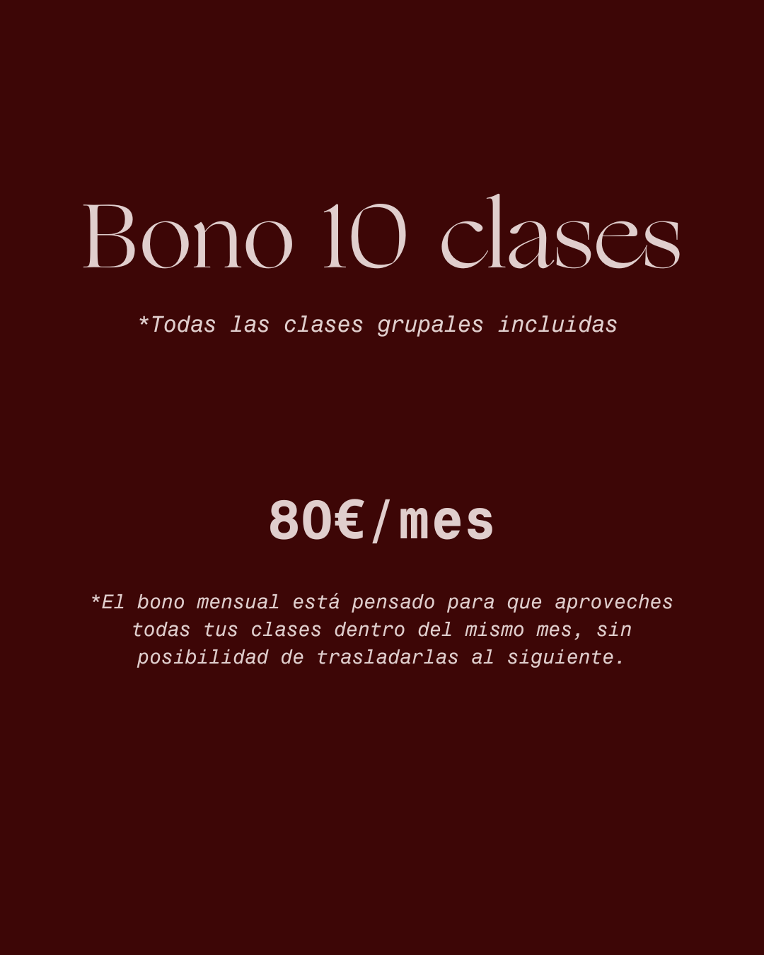 - Bono 10 clases → perfecto para 2 días por semana.
