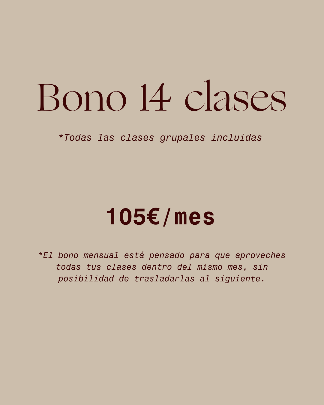 - Bono 14 clases → si entrenas 3 días por semana.