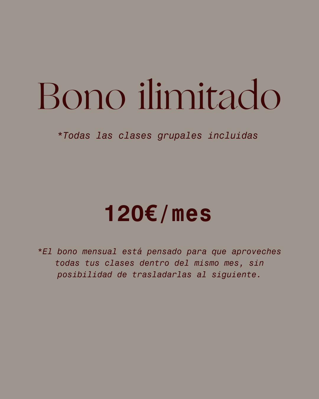 Con tu bono puedes combinar todas las disciplinas y horarios: barré, pilates, yoga, fuerza, hipopresivos… ¡tú eliges cada día!
